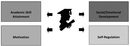 This simple framework illustrates both the spoken and frequently unspoken barriers that a student may be grappling with, particularly during the first year in college. Although each domain is independently distinguishable, they more commonly overlap in both negative and positive ways. For example, skill attainment is often driven by motivation, and motivation is often related to a social and/or emotional factor. Students who find themselves unable to regulate these areas independently will require concerted support from various resources on campus. Once the underlying barrier is addressed, skill attainment will more readily occur. If all professionals, such as faculty, advisors, resident deans, academic support personnel and counseling staff, understand the significance of these four domains, and can collaborate meaningfully, there will be greater efficiency in pinpointing the challenging areas and providing targeted on-going support.